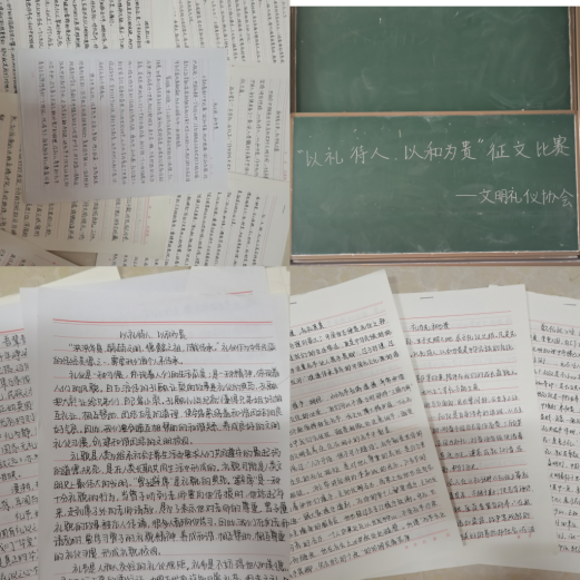 为进一步提升大学生的文明修养,引导学生养成文明礼仪的好习惯,营造浓厚的文明校园氛围,校文明礼仪协会于11月1日至11月15日举办了“以礼待人,以和为贵”征文大赛。