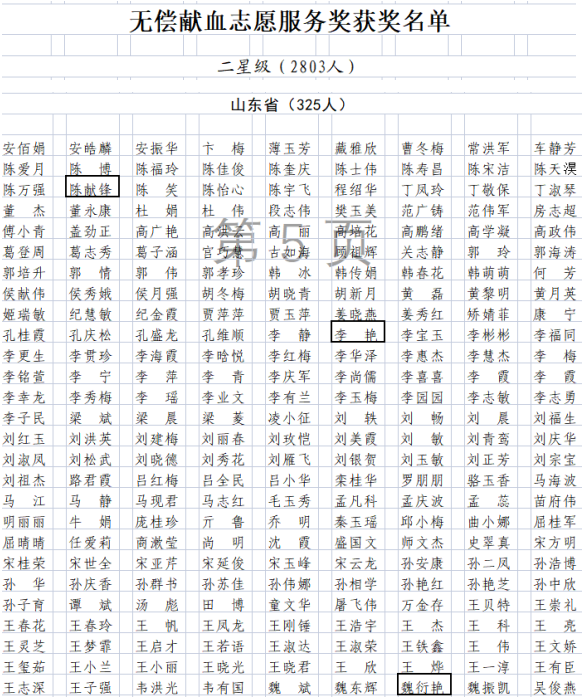 近日,国家卫生健康委、中国红十字总会、中央军委后勤保障部卫生局联合印发2020-2021年全国无偿献血表彰奖励获奖名单, 今年会学生工作部陈献锋同志、李艳同志、团委魏衍艳同志荣获全国无偿献血志愿服务奖二星奖,学生工作部樊洋洋同志荣获全国无偿献血志愿服务奖一星奖。