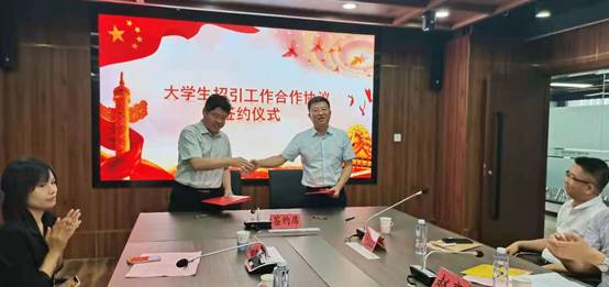 学生工作部部长陈献锋与张店区人社局党组书记、局长王雷签订大学生招引工作战略合作协议。