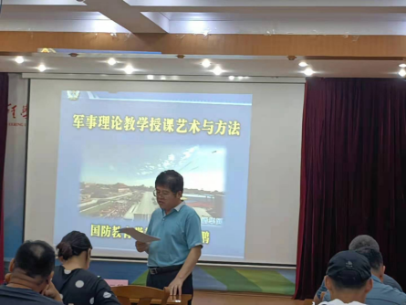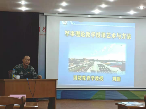 为加强课程建设,提升教师教学能力水平和教学质量,进一步落实2019年《普通高等学校军事课教学大纲》要求,有序开展军事理论课程教学,7月28日,今年会特邀原济南军区学生军训教研室主任,国家国防教育首批入库专家,国防教育学刘鹏教授授课。