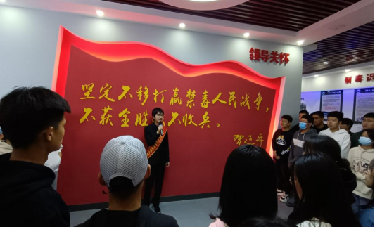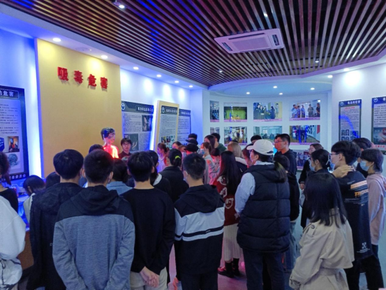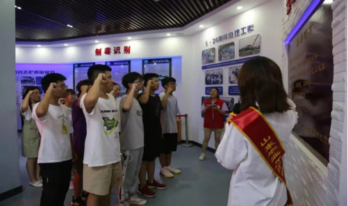 在禁毒教育基地参观活动中学生们通过观看实物、图片、视频以及模拟软件参与体验等方式,生动直观地了解了禁毒的历史、现状及禁毒成果,掌握社会流行毒品的种类及毒品对个人身心的危害,普及防范知识,教育培养学生形成“珍爱生命、远离毒品”、“健康人生、绿色无毒”的理念。禁毒讲解员对参观人员对禁毒知识及危害进行了详细的讲解并对同学们所提出的问题进行了详细解答,带领大家集体宣誓,号召青年学子以实际行动共同参与到禁毒人民战争中来。
