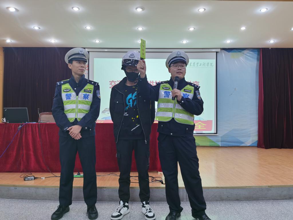在讲座中,民警结合当下我市创建全国文明典范城市的背景,重点宣讲一“盔”一“带”安全规则,何为一“盔”一“带”,为何一“盔”一带,以及如何规范践行一“盔”一“带”。同时结合高校学生易发交通事故,宣讲事故避险知识,重点讲解如何防范大货车转弯盲区引发的事故,播放我市辖区典型事故案例。用通俗易懂的语言向广大师生讲解了骑乘摩托车不戴头盔、驾乘汽车不系安全带、打手机、超速、酒驾等危害性,倡导师生驾乘汽车、骑乘电动车上下学时,系好安全带、戴好安全头盔,文明参与交通出行。民警还通过现场演示、互动模拟、讲解中穿插故事等喜乐见闻的形式,将交通安全法律法规和安全常识以深入浅出、生动活泼的形式教授给学生们。