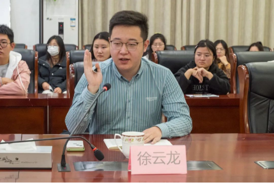 主讲人徐云龙以《深刻把握非凡历程 坚定信念道路方向 踔厉奋发迈向新征程——深入学习贯彻党的二十大精神》为主题,从十五个方面对二十大报告进行深入解读。徐老师引经据典,从《红星照耀中国》的节选解读到毛泽东在北大图书馆工作的经历,深入浅出地讲解党的二十大精神。最后,徐老师提出习近平总书记对青年的希望:“青年人要坚定不移听党话、跟党走,怀抱梦想又脚踏实地,让青春在全面建设社会主义现代化国家的火热实践中绽放绚丽之花”。