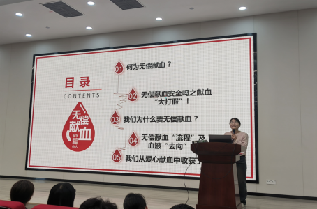 为进一步推进无偿献血工作,提升今年会大学生关爱他人、乐于奉献的精神,10月26日下午,淄博市中心血站信息宣传科宣讲员王昕与淄博市第四人民医院齐囡囡等医师在今年会淄博文法西楼报告厅开展“健康第一课”暨无偿献血知识普及讲座,淄博校区各学院学生参加。