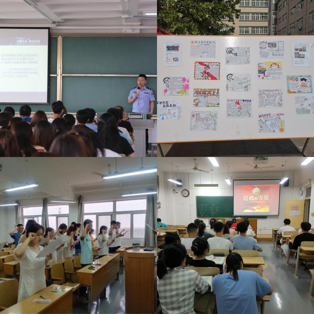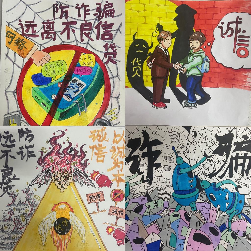 各学院根据自身特色,结合校园文化建设,举办了诚信教育主题绘画活动、知识竞赛、征文比赛、演讲比赛、主题班会等十余项特色鲜明的诚信教育活动。并通过绘制海报、拍摄《反诈骗宣传视频》,邀请校外专家开展反诈骗知识普及讲座等方式开展反诈骗教育。