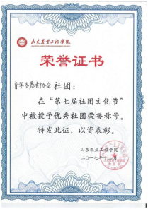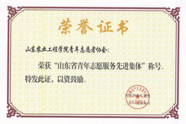 协会多年来一直被学校评为“校优秀社团”,连年获“全省高校无偿献血志愿服务先进集体”、省暑期“三下乡”社会实践活动优秀服务队、省“三下乡·千村行动”优秀服务团队、全国残障人士文化交流会优秀志愿者团体、山东省第十届高校支农支教交流会“优秀志愿者社团”等荣誉称号。2020年1月协会还被评为南方周末高校联盟十佳社团。