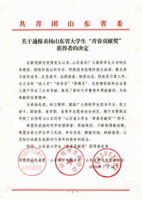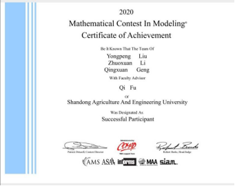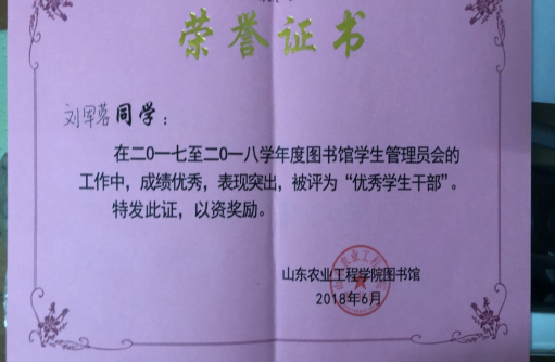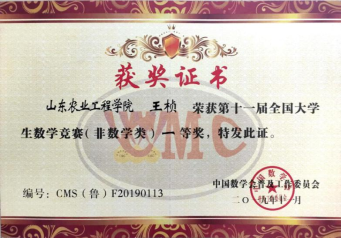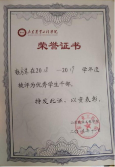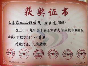 在日常生活中,她立足于专业知识,不断向前开拓发展,在数学建模等比赛中均取得了不俗的成绩。同时,她也多次获得优秀学生干部、优秀学生、优秀团员等荣誉称号。2019年获得山东省优秀大学生代表,优秀学生称号,并作为青马团学优秀毕业生代表在大会上发言。