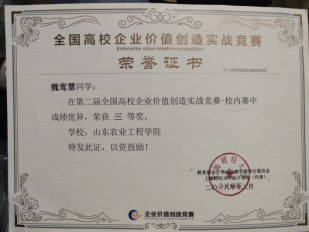 在校期间,致力于在学业上精专研究,不断突破自我。他十分热爱自己所进修的物流工程专业,通过不懈努力,连续两学年综合成绩位列专业第一。在2018-2019获得国家奖学金、校级奖学金等荣誉称号,在2019-2020年度获得省政府奖学金和校级优秀学生荣誉称号。课下参加各种专业竞赛,在2020年度,他获得了全国大学生供应链大赛中获得国家三等奖;物流建模仿真大赛中获得校级一等奖,成功入围国家决赛;学创杯”大赛中取得省级三等奖;还积极参与了全国大学生创新创业项目、“互联网+”大赛、百蝶杯“链战风云”挑战赛等比赛。