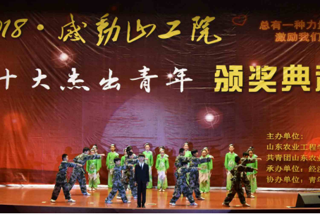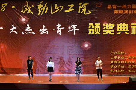 2018年5月9日,由校团委主办,经济管理学院承办,青年志愿者协会协办的“2018感动山工院十大杰出青年”颁奖典礼在礼堂盛大举行。