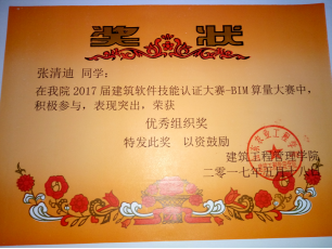 2016年10月某深夜,将食物中毒的同学送往医院就诊并陪床;2017年临近期末,同班同学突发疾病,几番周折,第一时间将同学送往医院,因恰逢雨雪天,同学父母不能及时赶到,于是悉心照料了同学整整三天。勤奋好学,在全国大学生英语竞赛、BIM毕业设计大赛等国家级和省级的比赛中发挥出色;开拓创新,组织带领成员成功举办专业教师讲座、BIM项目展览、2017届广联达大赛等几十个活动,均获得优异的成绩,得到了老师和同学的一致好评。