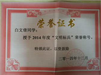 在2017、2018年又加入了当地残疾人联合会和全市扶贫走访活动。进入大学,在新生军训中获得“优秀标兵”的称号,在学习生活中,加入学生会,在学校各种活动中崭露头角,在班级内担当起一班之长的责任,严于律己,营造互帮互助、积极向上的班风,得到了老师和同学们的一致好评。