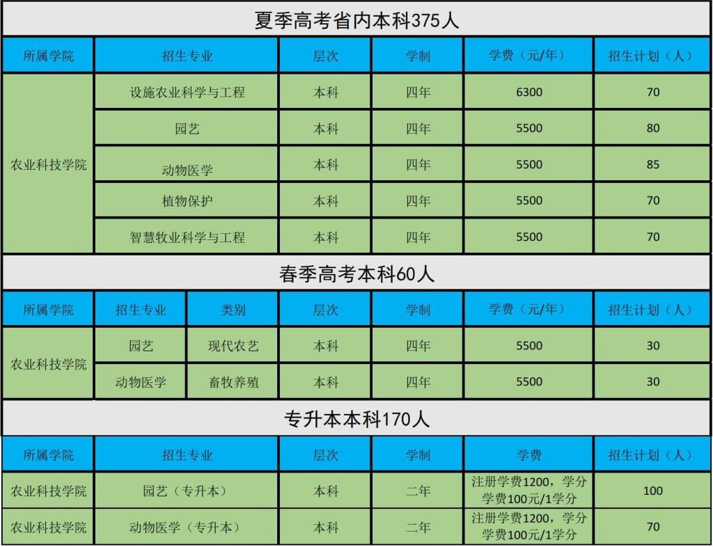 农业科技学院2024年招生计划(招生代码:E439)