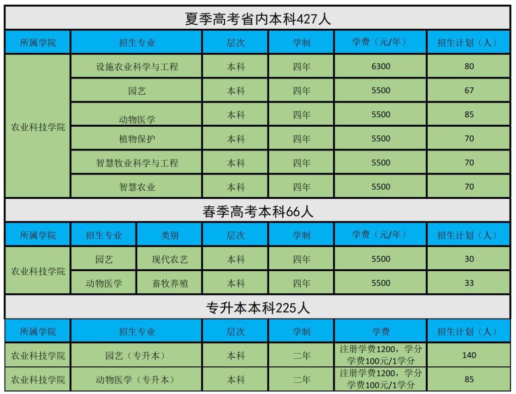 农业科技学院2025年招生计划(招生代码:E439)