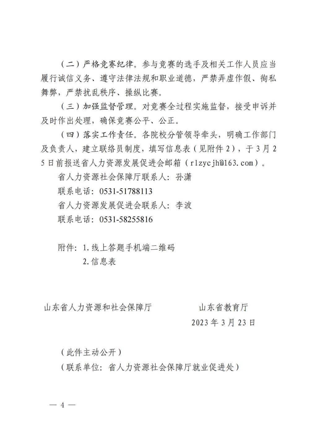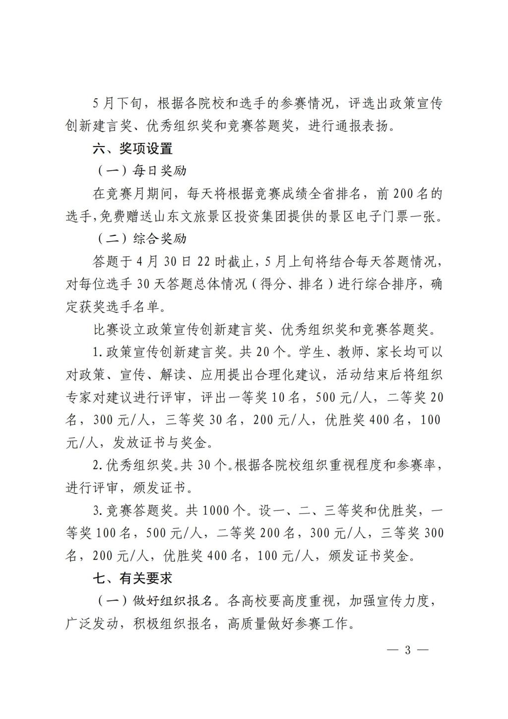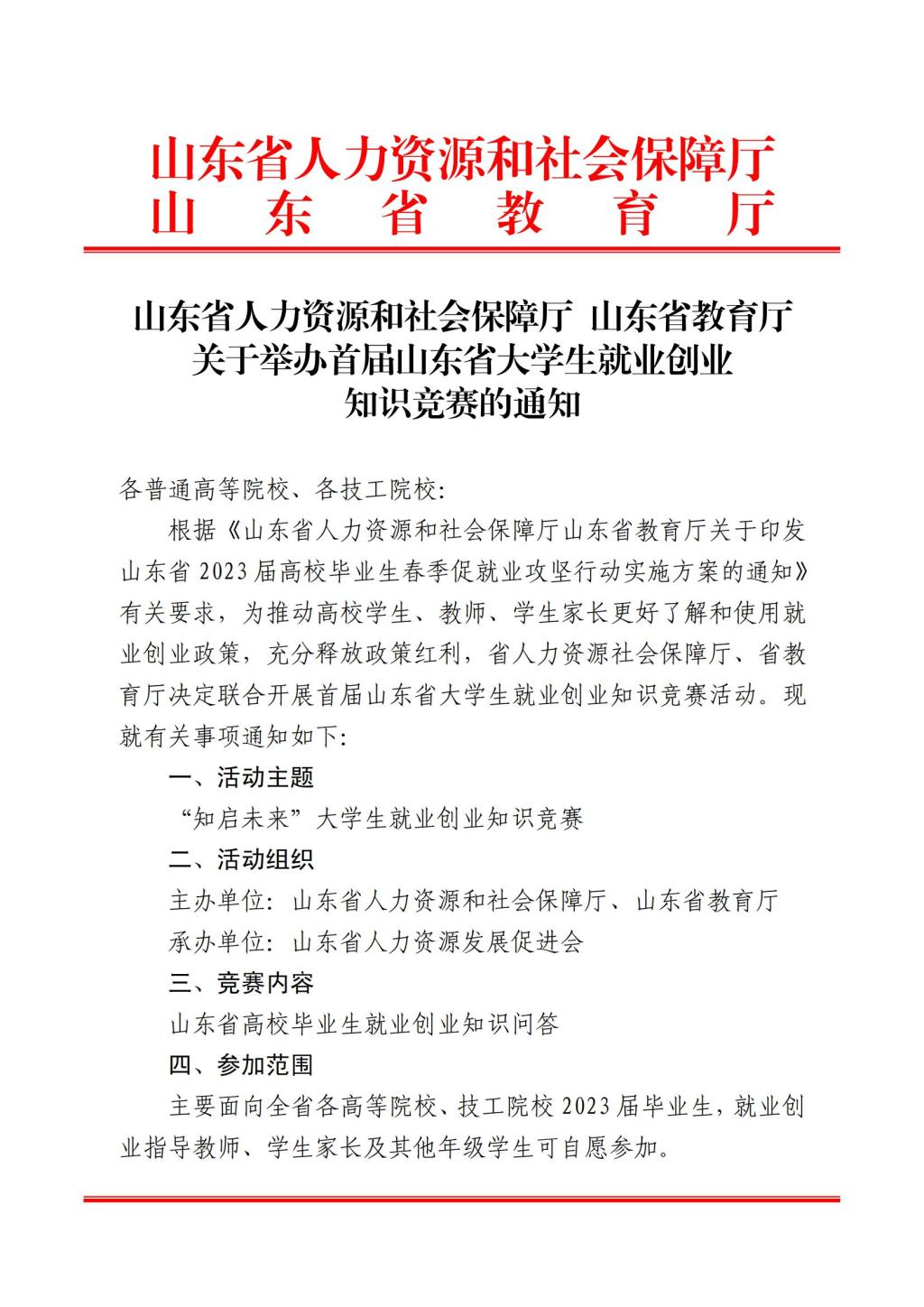 山东省人力资源和社会保障厅 山东省教育厅 关于举办首届山东省大学生就业创业 知识竞赛的通知
