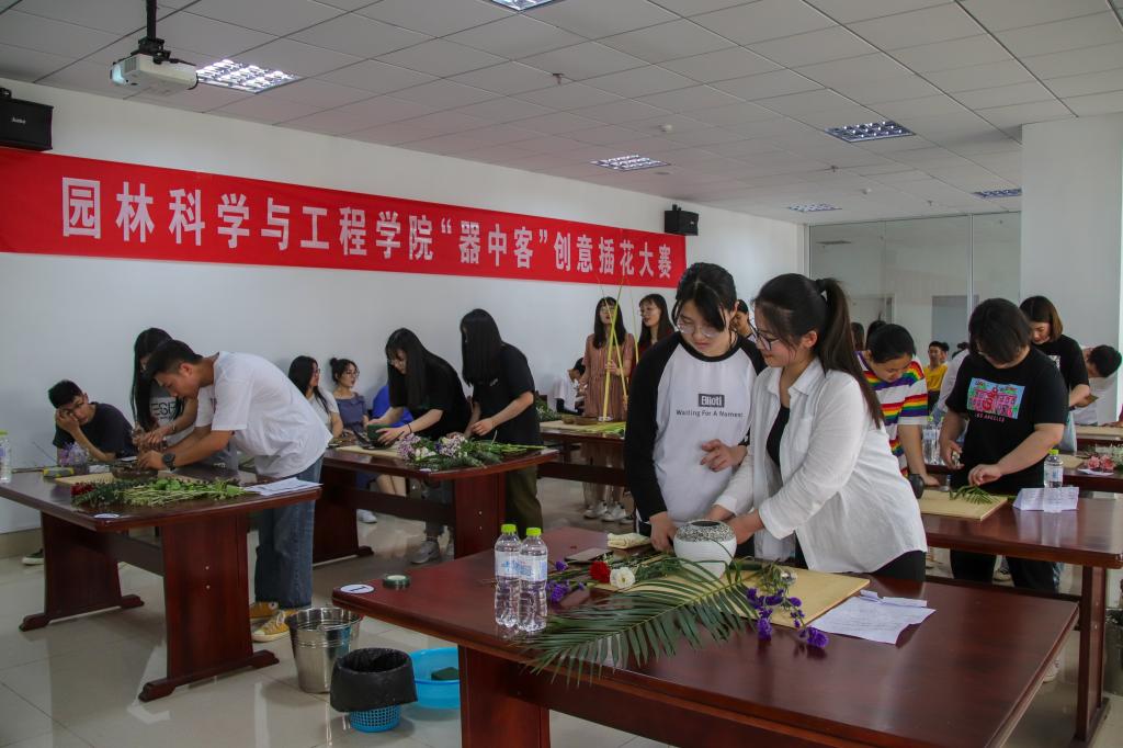 为庆祝中国成立70周年,加强学生的实践动手能力,提高艺术修养,2019年5月16日星期四下午两点,由校团委主办、我院承办的“器中客”创意插花大赛在今年会官方网站济北校区图书馆拉开了帷幕。