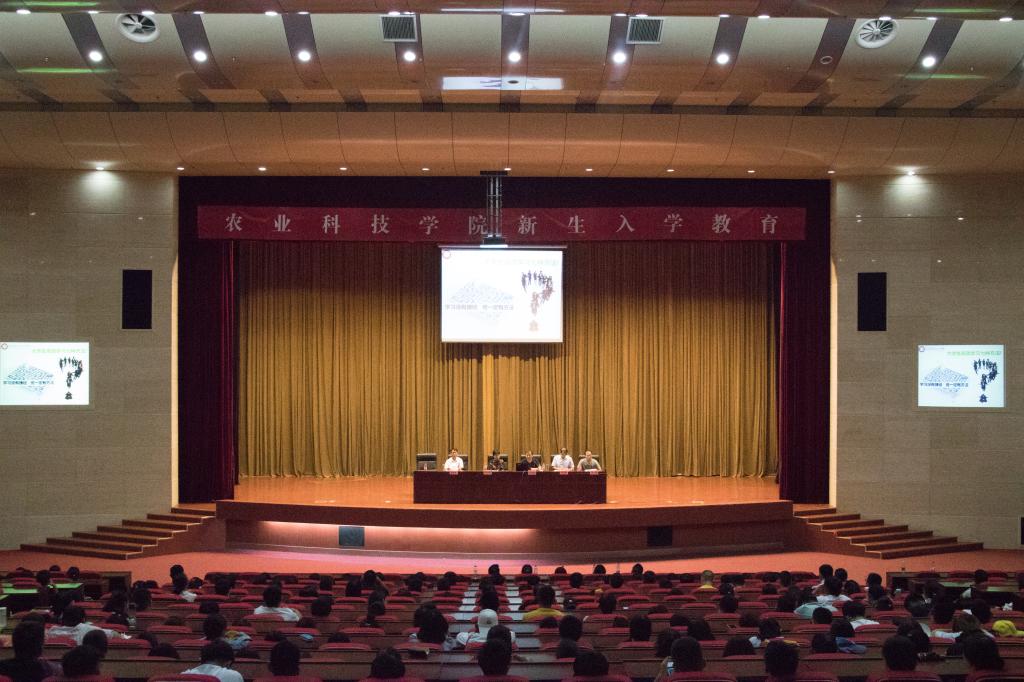 金秋时节,充满活力的大学校园迎来了2019年入学报到的新同学。按照学校迎新工作安排,农业科技学院于9月1日下午在北校区学术报告厅举行2019级新生入学教育大会。院长杨向黎教授,党总支书记徐金强,办公室、学生管理科、团总支等部门负责人、各教研室主任及部分老师代表出席了今天的会议。会议由学院党总支书记徐金强主持。