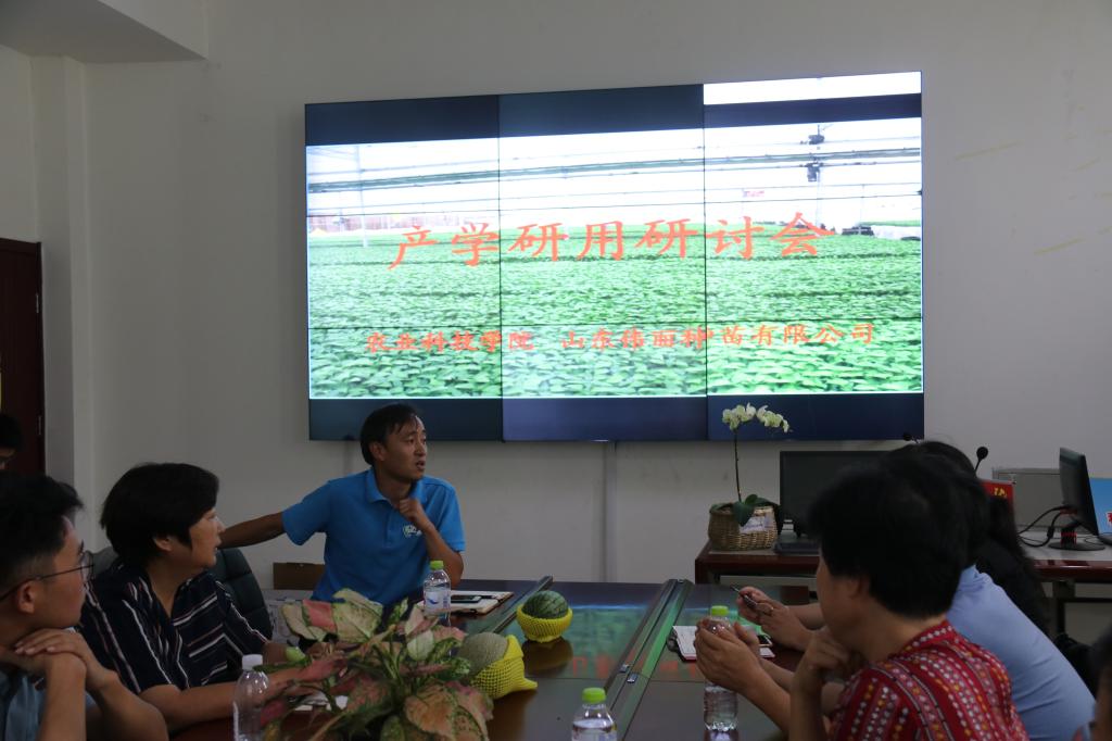 近日,我院院长杨向黎带队赴山东伟丽种苗有限公司,看望我院在该公司开展实训活动二十六位大学生,并与同学们就大学生暑期社会实践活动等方面进行了座谈交流。山东伟丽种苗有限公司总经理张伟丽等人出席座谈会,我院刁有江副院长、部分教师参加了此次活动。