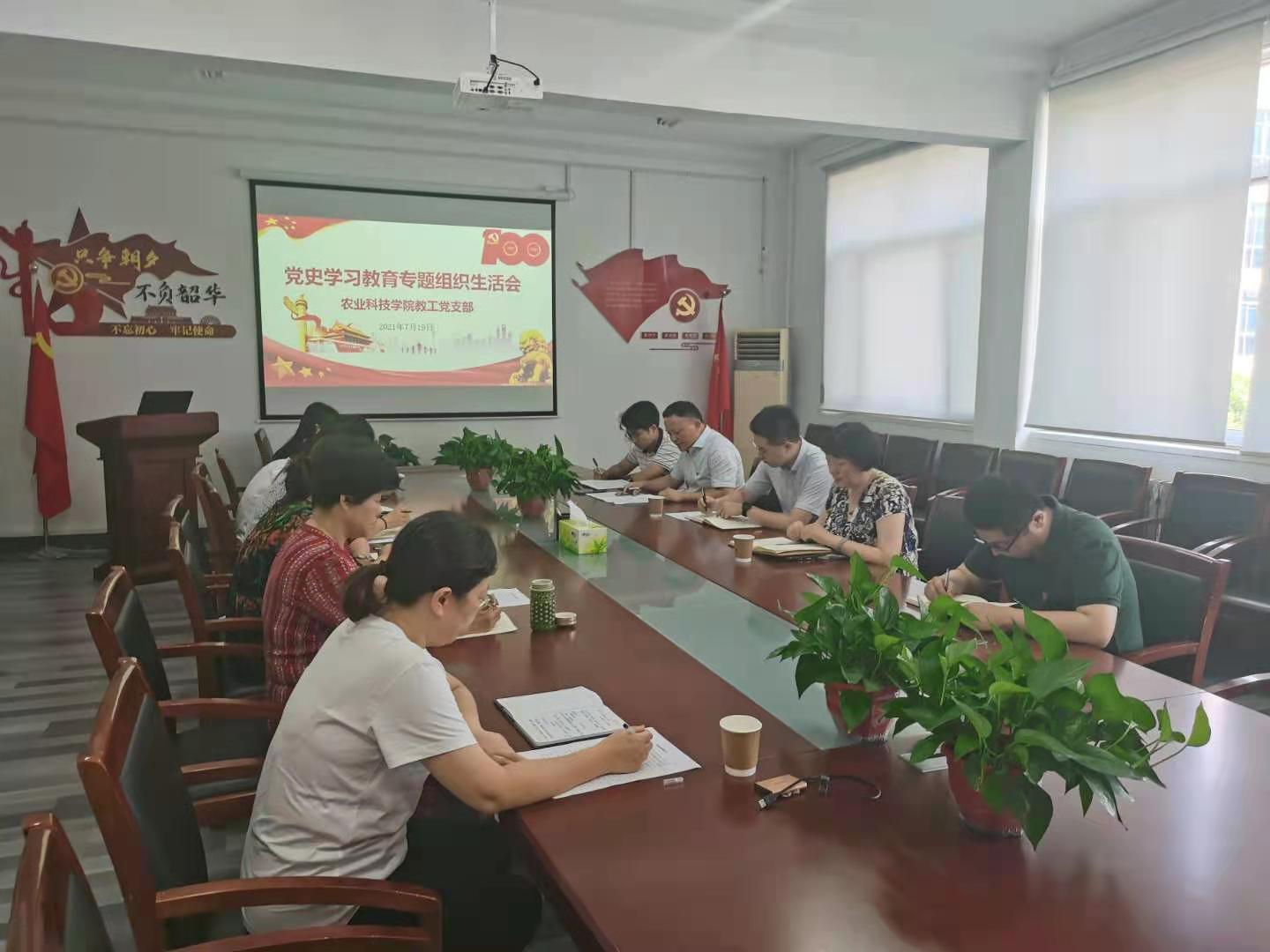 按照《今年会官方网站党史学习教育专题组织生活会方案》的通知要求,农业科技学院教工党支部于2021年7月19日召开了党史学习教育专题组织生活会,院党总支组织员马健同志对组织生活会进行指导。学校党史学习教育巡回指导组郑华美、徐云龙列席指导。