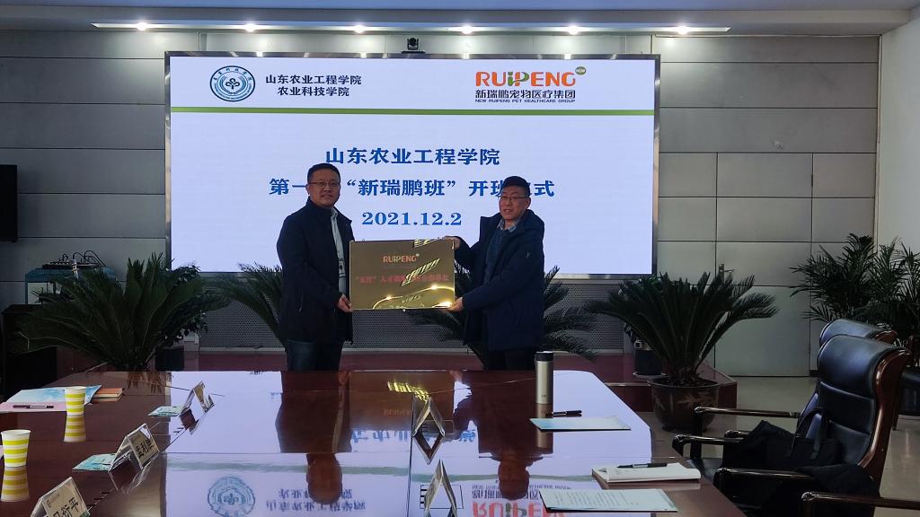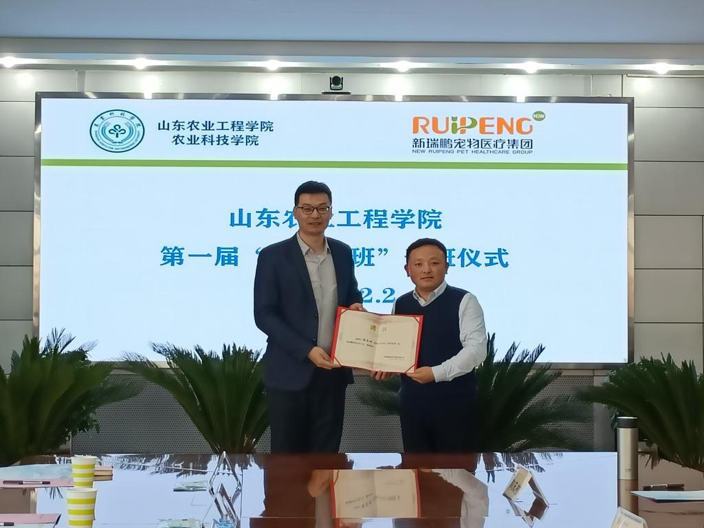 为进一步加强与实践教学基地的合作,发挥实践教学基地在实践教学中育人优势,12月2日下午,我院与新瑞鹏宠物医疗集团举行首届“新瑞鹏班”开班仪式。新瑞鹏宠物医疗集团招聘经理郝东旭、集团医务总监孟利胜、山东区副总经理马衍平以及我院刁有江副院长、动物医学教研室主任陶庆树、教授李淑青、辅导员华晓晓出席了此次开班仪式。
