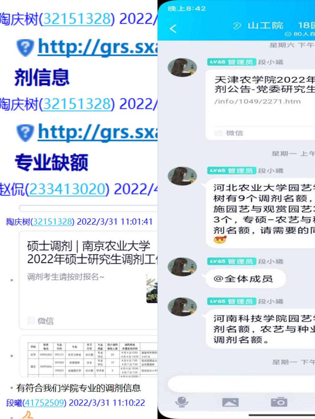 开设“交流群”。为了增加参加研究生复试同学的竞争力,提高复试的成功率,学院各专业建立了复试QQ群,辅导员、班主任、学业导师、学长等从复试的专业知识、复试的礼仪和复试的技巧等方面给予指导,并强调了复试注意事项。同时,完成复试的同学及时将复试的心得传递给其他同学,让“爱”在复试中传递。