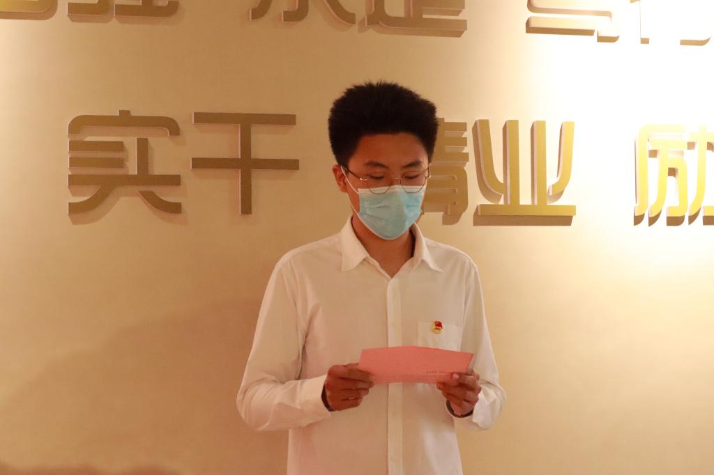 入团仪式在庄严的国歌声中拉开了帷幕,党总支副书记王猛宣读了新团员名单,并为新团员佩戴团徽。在领誓人赵彦茹带领下,新团员庄重宣誓,老团员重温入团誓词,铿锵有力的誓词激荡着每一位团员的心。同学们纷纷表示作为一名光荣的共青团员,要坚定不移听党话、跟党走,让青春在为祖国、为民族、为人民、为人类的不懈奋斗中绽放绚丽之花,用实际行动践行“请党放心 强国有我”的铮铮誓言。