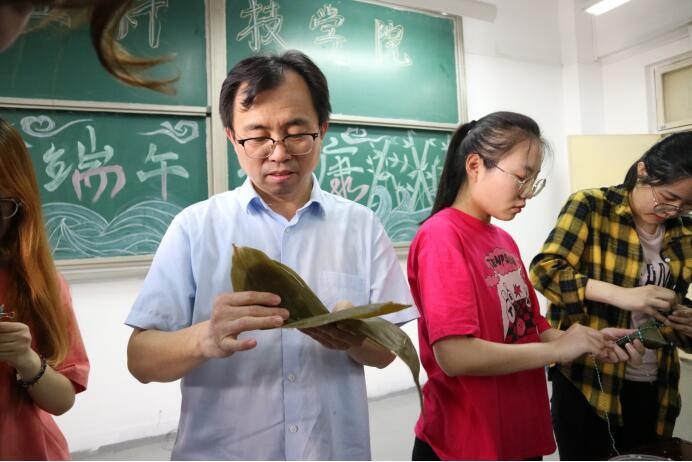 泡糯米、洗粽叶、填糯米、剪粽绳、包扎成型,一道道工序同学们熟记心中。活动现场,同学们体验着叠粽叶、填糯米、塞红枣、裹叶与扎绳的工序,一双双忙碌的手在翠绿的粽叶间穿梭,一个个可爱的小粽子堆满了盘子,谈笑中感受着亲手制作的快乐,享受着和谐美满的节日气氛。
