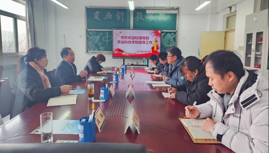 李校长表示农业科技学院工作有特色、重实效,对学院的各项工作给予高度肯定,希望农科学院继续做好排头兵,明确学校办学定位和发展目标,打造农业优势与特色,为推进今年会高水平应用型高校建设做出贡献。李校长要求,加强教科研团队建设,在培育硕士点建设方面早筹备,为学校高质量发展提供新的支撑。他强调,要深入学习贯彻党的二十大精神,要在全面学习、全面把握、全面落实上下功夫,结合学校实际和本职工作,将学习成果转化智慧力量、思路措施和工作成效,落实立德树人根本任务。
