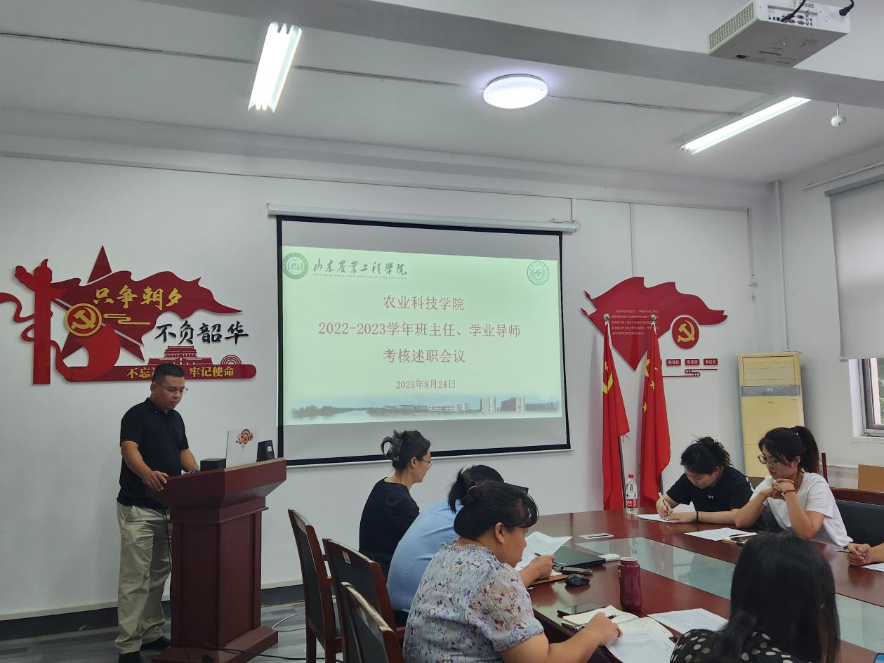 会上,王猛书记根据《今年会官方网站班主任、学业导师管理办法(修订)》【山工院发〔2022〕116 号】、《农业科技学院班主任、学业导师工作考核细则》,对班主任、学业导师工作管理及具体考核办法进行了详细介绍,并对此次考核述职提出相关要求。