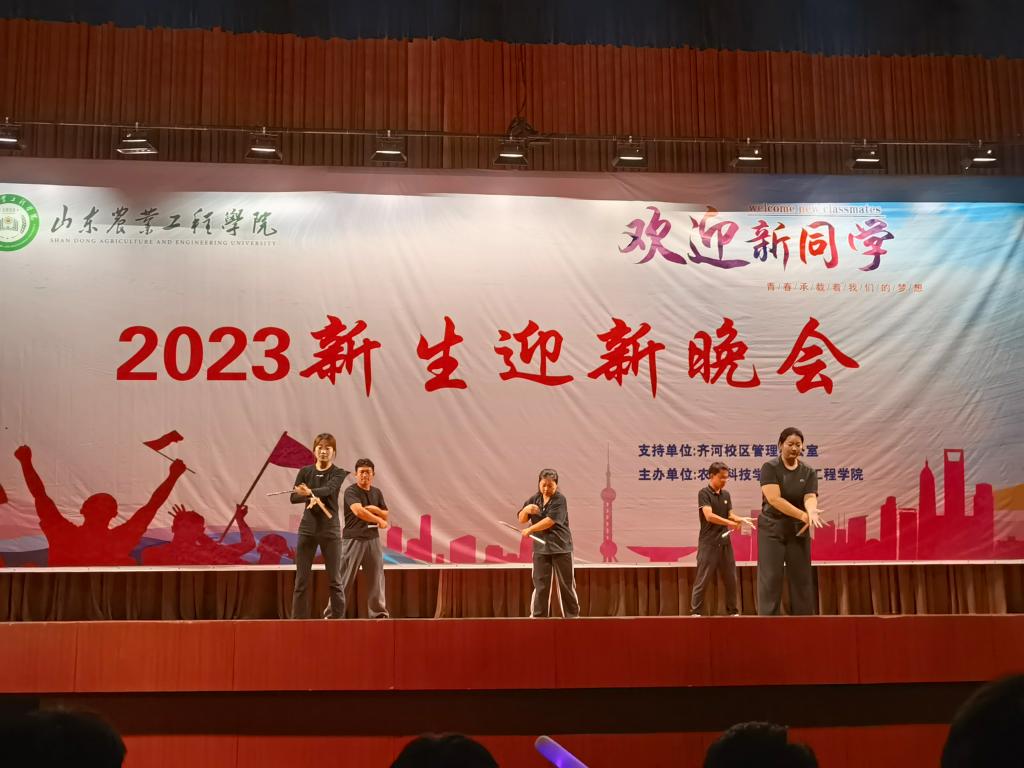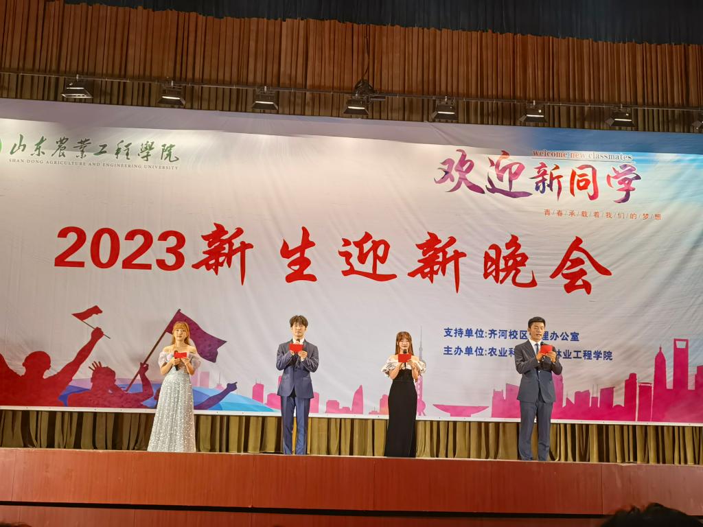 “以农林之基,续山工院百年华章”2023级新生迎新晚会于9月25日晚7点在齐河校区报告厅举办。齐河校区管理办公室党总支书记吴兴怀,农业科技学院院长杨向黎、党总支书记王猛、副院长刁有江,林业工程学院党总支副书记房菲出席晚会,全体新生辅导员老师及新生参加晚会。