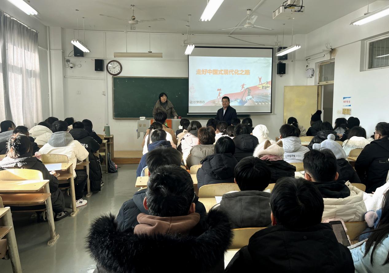 12月20日上午,校党委委员、副校长郑华美在齐河校区226教室为我院2023级动物医学专业全体同学讲授“形势与政策课”。郑校长以《走好中国式现代化之路》为题,引导学生紧跟时代发展脉搏、建功新时代。