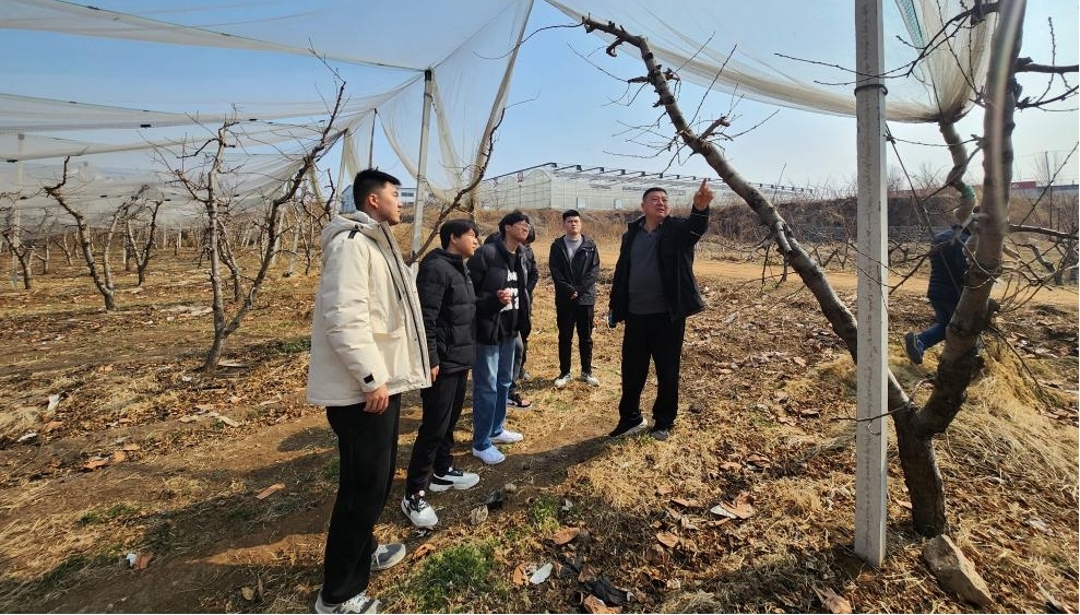 会后,刘教授一行前往康顿农业的桃树种植基地,对在基地实习的学生给予了桃树春季管理的技术指导,现场进行了桃树“Y”字形整枝的示范,并激励学生要真正在实践中增长才干,练就强农兴农本领。