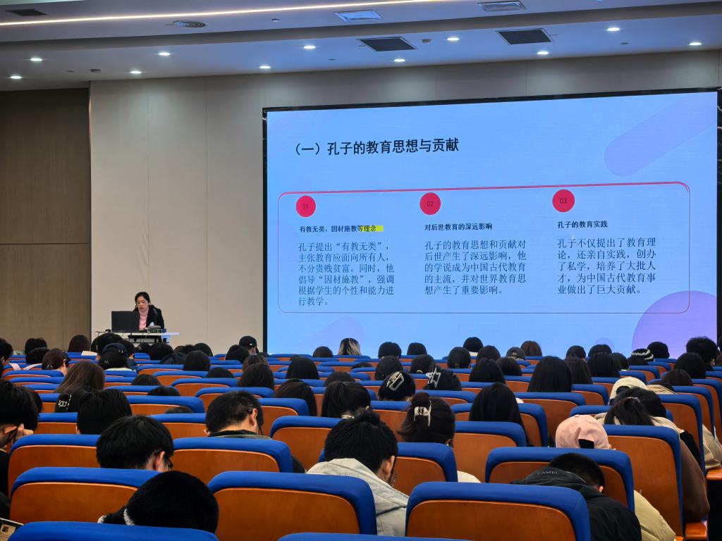 11月21日下午,马克思主义学院褚敏老师在文法东楼A104报告厅为我院学生带来了一场主题为“深入学习贯彻习近平总书记《论教育》——大力弘扬教育家精神”的精彩宣讲。