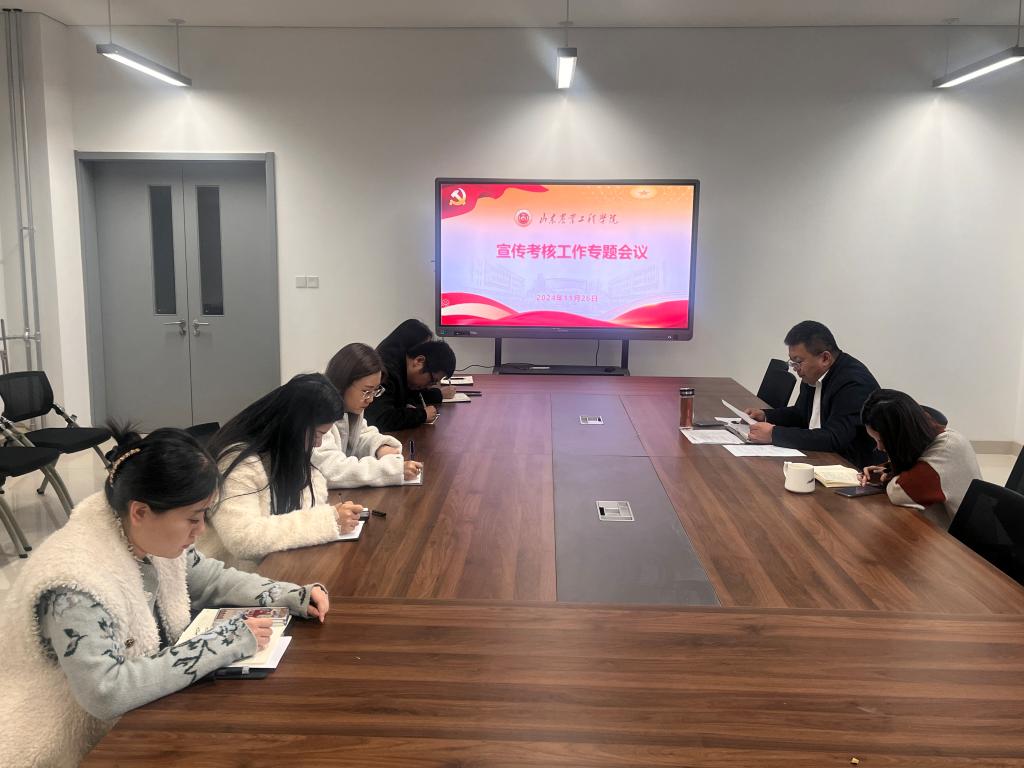 11月26日,我院在A303会议室召开新闻宣传考核工作专题会议,学院党总支书记王猛主持会议,党总支副书记刘书兵、专职组织员、各党支部书记参加会议。