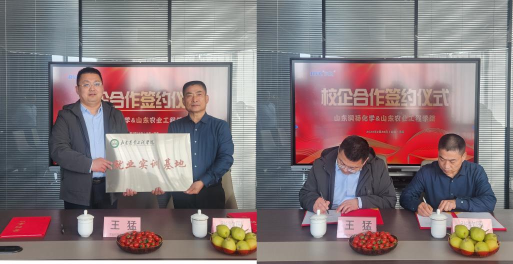 2月25日,农业科技学院与山东润扬化学有限公司成功举办“就业实训基地”挂牌仪式。学院党总支书记王猛,山东润扬化学有限公司企业总经理张钦国、副总经理田兴启等人员出席仪式。
