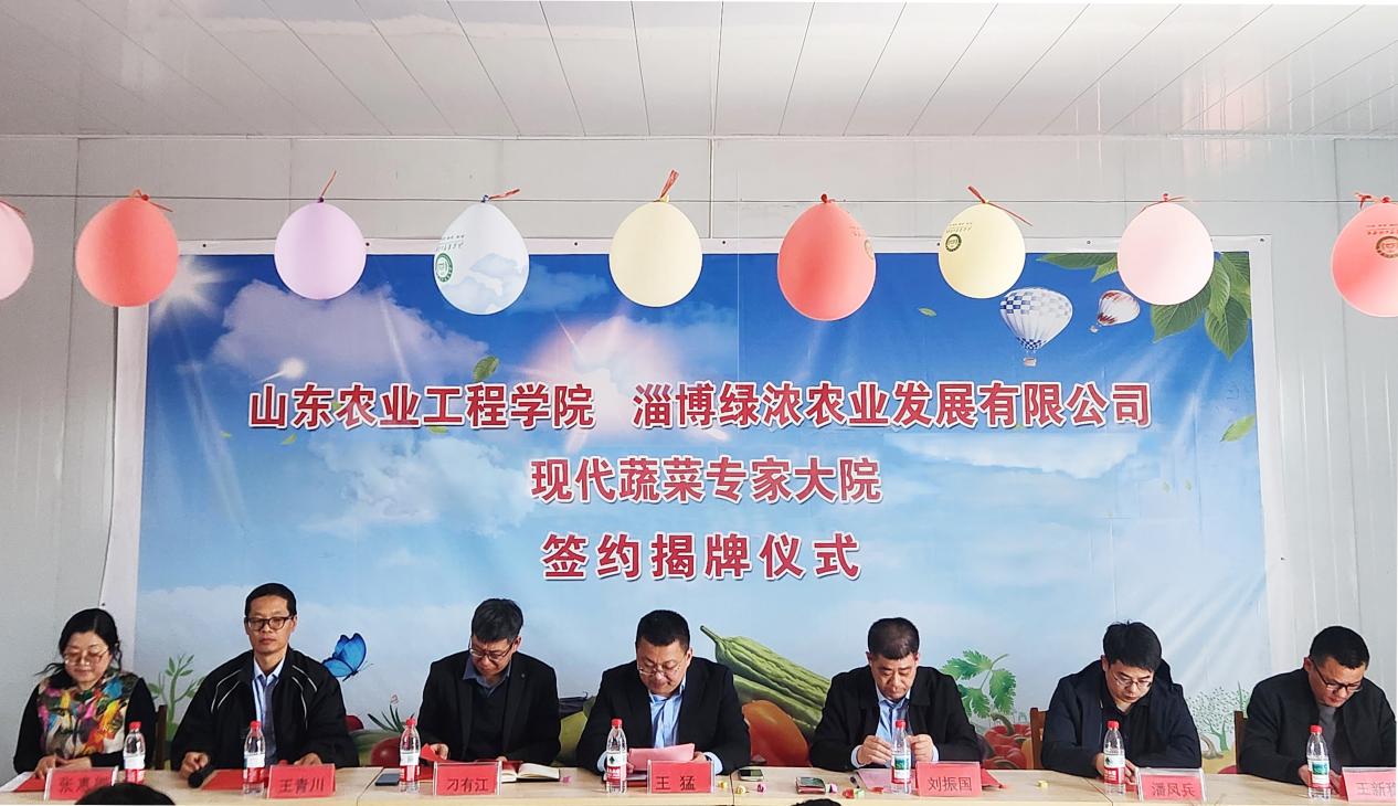 4月15日上午,农业科技学院与淄博绿浓农业发展有限公司成功举办“孙东文教授现代蔬菜专家大院”揭牌暨签约仪式。我院党总支书记王猛、副院长刁有江、孙东文教授、科技处科长潘凤兵,淄博市数字农业农村发展中心副主任刘振国、科长张海娟,淄博绿浓农业发展有限公司董事长张惠卿、总经理齐建华等出席仪式。