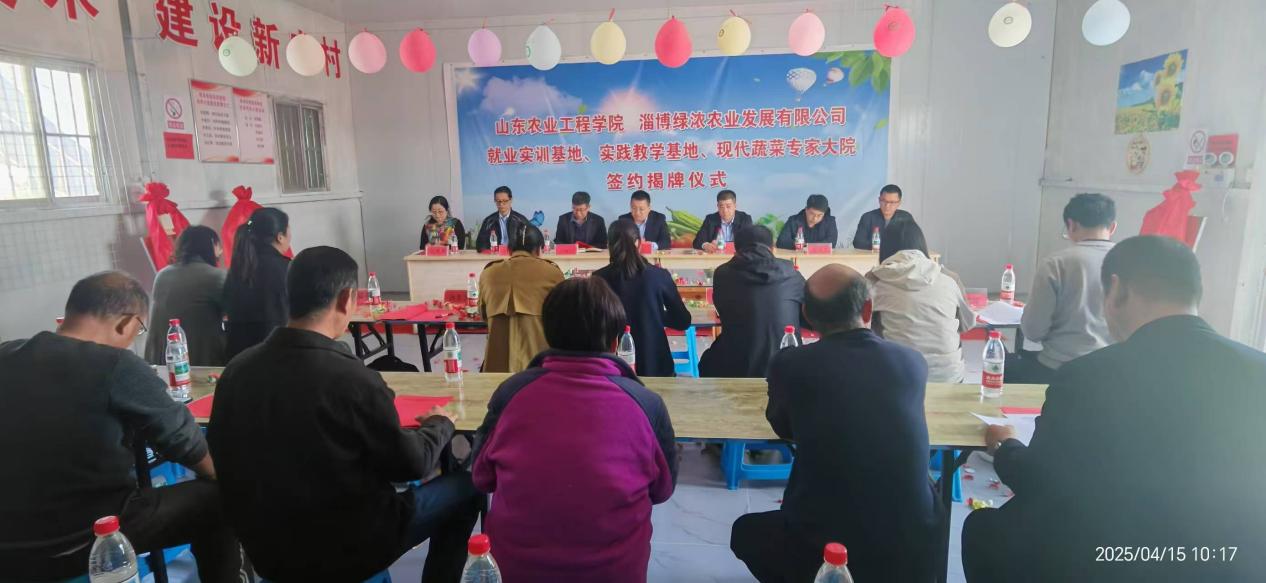 王猛书记、刁有江副院长、淄博数字农业农村发展中心刘振国副主任、淄博绿浓农业发展有限公司张惠卿董事长,共同为“就业实训基地” 和“实践教学基地”揭牌。
