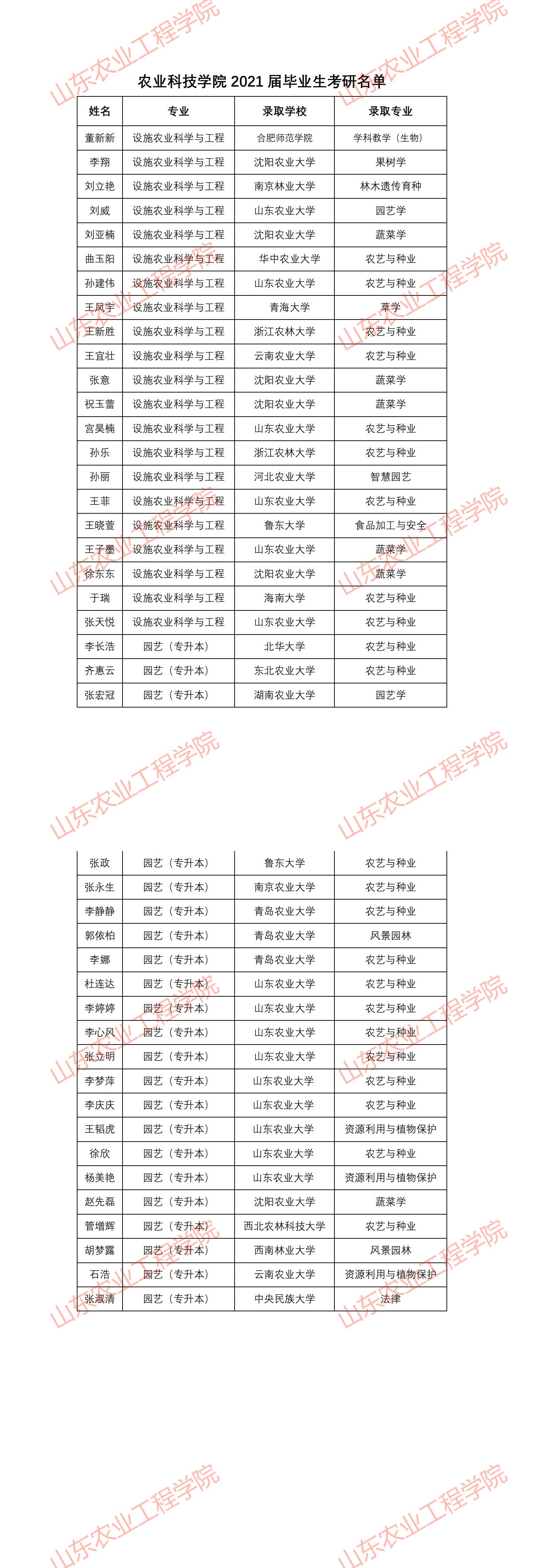 农业科技学院2021届毕业生考研名单
