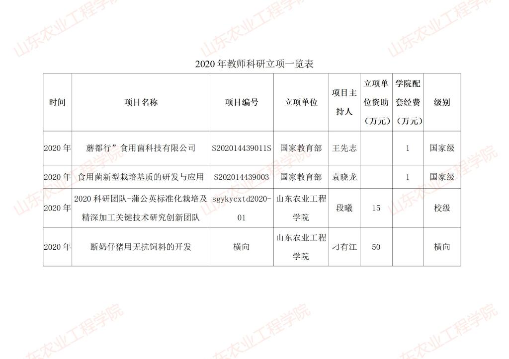 农业科技学院2020年教师科研立项一览表