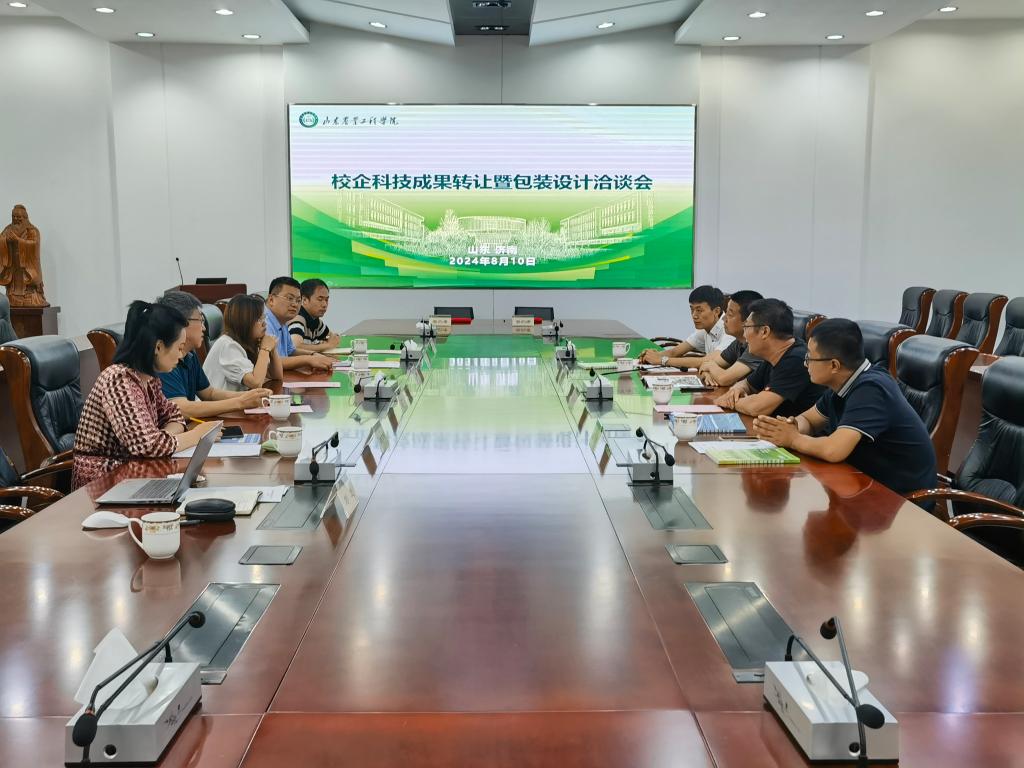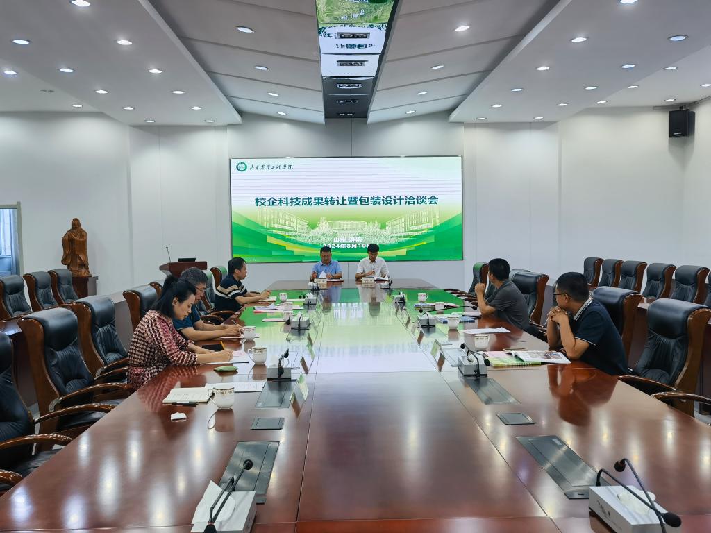 8月10日上午,校企科技成果转让暨包装设计洽谈会在今年会官方网站济南校区四楼会议室成功举行。沂源县东里镇人大主席任大向、东里镇农业农村办主任鹿子杰,校科技处处长迟晓君,农业科技学院党总支书记王猛、副书记赵侃、副院长刁有江等相关负责人参加会议。会议由刁有江主持。