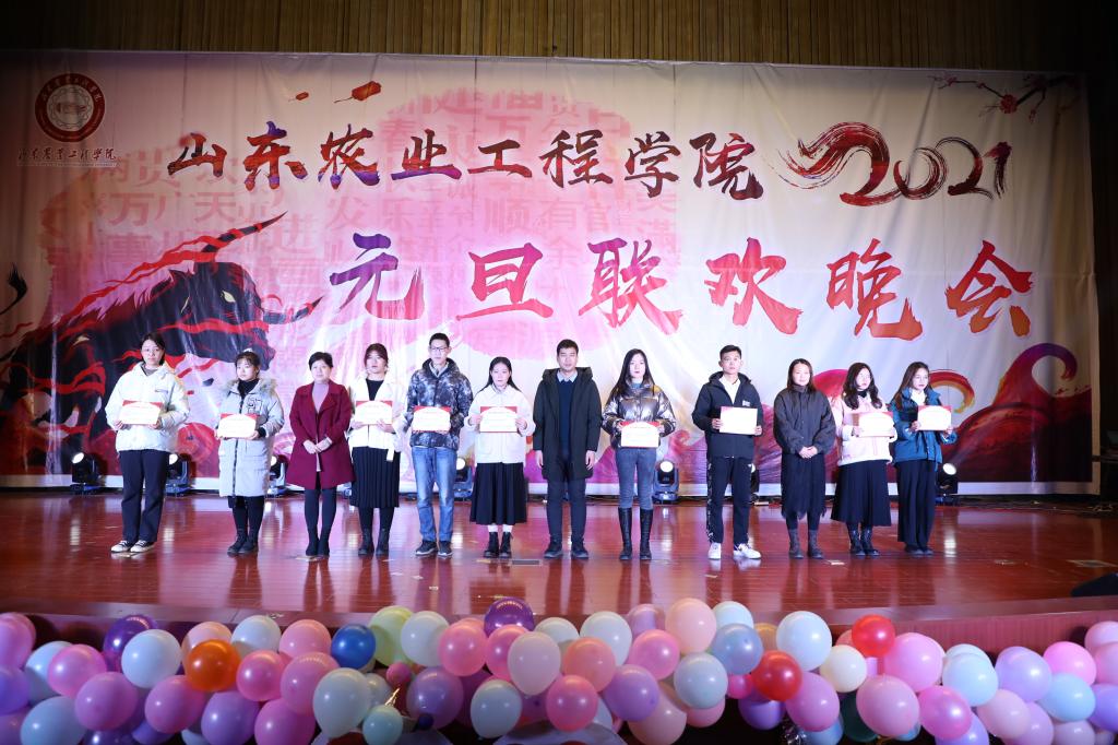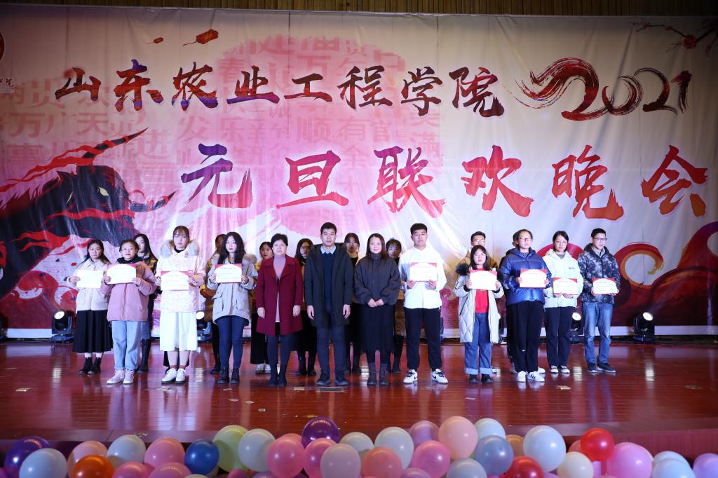 济南正庄农业科技有限公司项目主管张长现、项目专业王颀为获奖同学颁发了奖学金,并合影留念。
