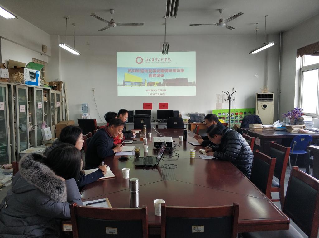 2019年1月10日上午,按照校党委安排,校党委委员、副校长杨振宁率领校党委党建工作调研组,对我院党总支书记2018年度履行全面从严治党责任和抓基层党建情况,通过听取汇报、召开座谈会、查阅相关材料等方式进行了调研。杨振宁副校长听取了我院党建工作的情况汇报并讲话。组织人事处处长范永强主持调研座谈会,园林学院班子成员、各党支部书记、处科级干部、教研室主任、党代会代表、教授代表等参加了座谈会。