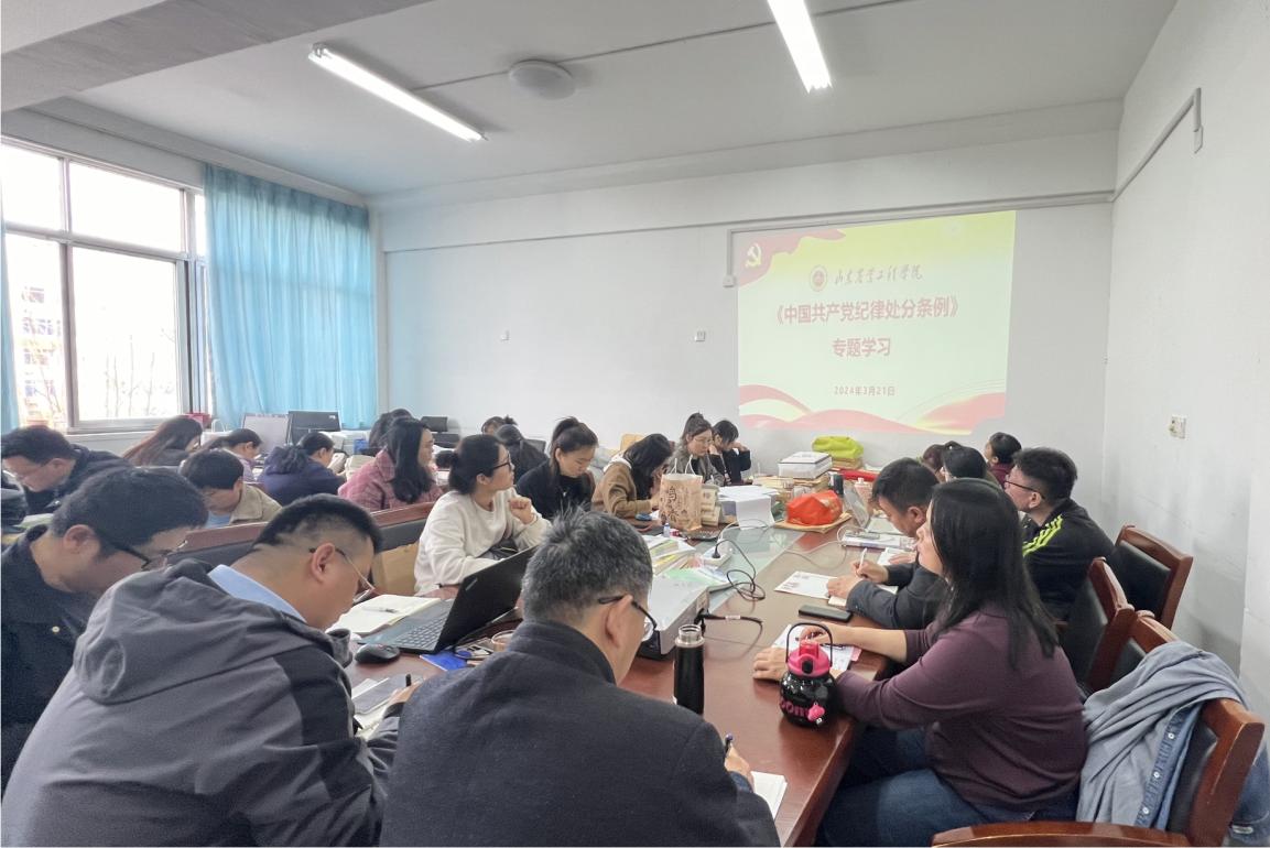 为深入学习贯彻习近平新时代中国特色社会主义思想,切实加强经常性纪律教育,3月21日,我院组织全体教职工集中学习《中国共产党纪律处分条例》。