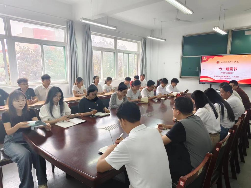 为庆祝中国共产党成立103周年,引导广大党员不忘初心,7月1日,我院学生第一党支部、学生第二党支部于229党员活动室联合开展了“庆七一”主题党日活动,全体党员同志重温入党誓词、观看电影《建党伟业》,赓续共产党人的精神血脉。