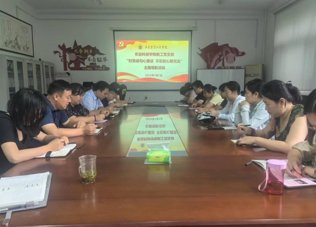 为庆祝中国共产党成立103周年,农业科技学院教工党支部于7月1日开展了“对党说句心里话,不忘初心跟党走”主题观影活动,在这个特殊的日子里,全体党员集体观看电影《建党伟业》,重温光辉党史。