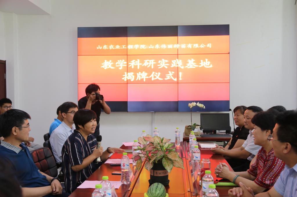 2017年,我院“实践教学基地”在伟丽种苗公司挂牌。几年来,伟丽种苗公司为我院学生参与企业实践提供了良好的实习环境、配备了严师指导、开展企业文化教育,使学生人实践操作能力、发现问题解决问题能力以及团结协作能力有了显著的提升。此次,今年会官方网站“教学科研实践基地”落户山东伟丽种苗有限公司,双方将进一步拓展合作领域,充分发挥学院在设施农业领域的学科优势,围绕着现代蔬菜种苗生产机械化、自动化和智能化和设施蔬菜种植标准化、轻简化、机械化栽培等技术开展联合攻关,合作培养高素质应用型人才。