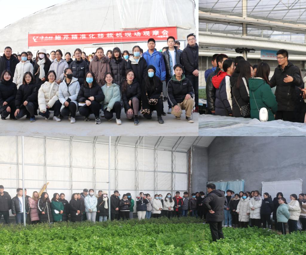 伟丽公司技术人员带领同学们参观了LED补光育苗、温室环境调控系统,讲解了鲍芹精准化移栽等农业新技术,让同学们领略了新时代蔬菜育苗行业的新理念、新方法,拓展了同学们视野,也增添了同学们服务山东蔬菜产业的信心与决心。