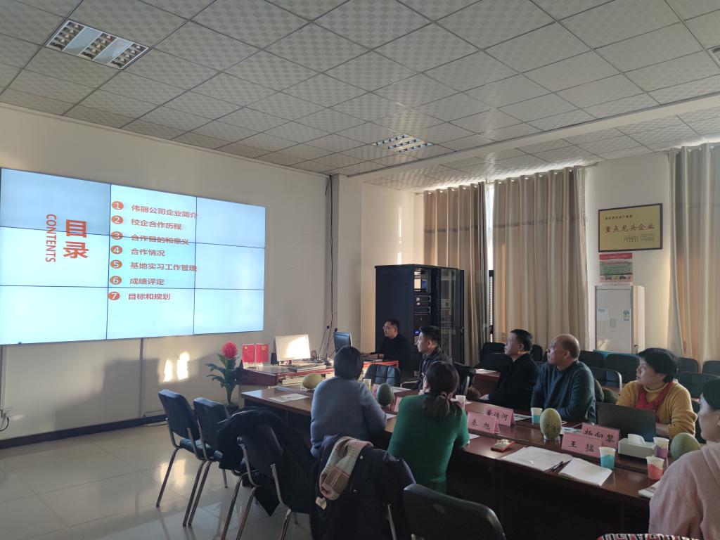 座谈会上,山东伟丽种苗有限公司张伟丽总经理向杨校长介绍公司的基本情况,公司在瓜菜种苗生产、品种选育、果蔬种植与营销、技术研发与服务等领域取得的成绩,总经理助理王丰健向杨校长汇报了多年来校企双方在专业实践、社会实践及毕业实习等方面开展的工作、取得的成果,杨校长对双方合作取得的成绩给予高度的评价。