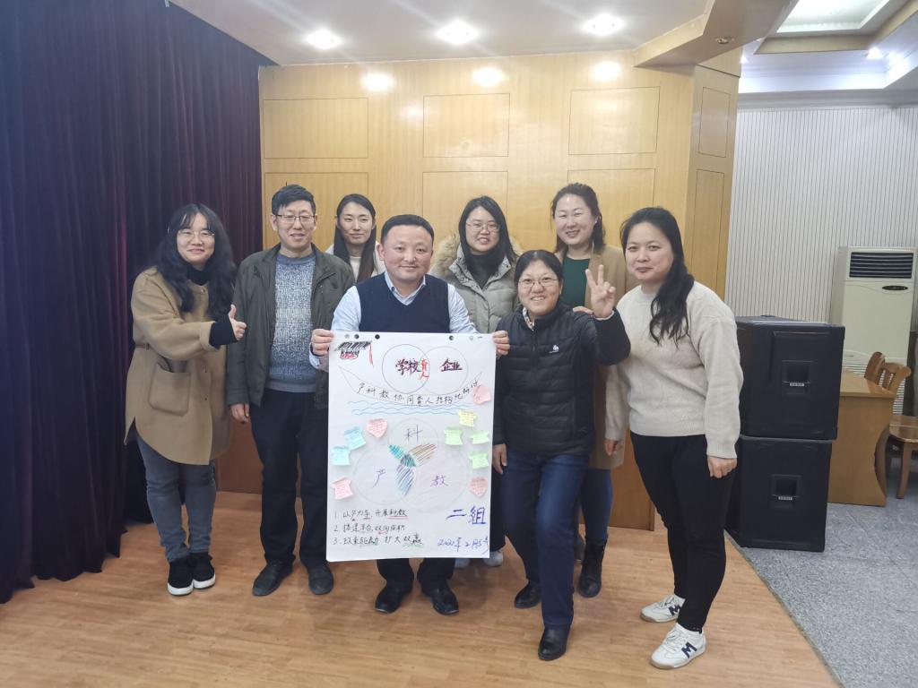 一组从健全体制机制,保障产教融合;优化课程体系,企业参与教学;价值引领向上,科研服务农业三个方面进行了分享。二组从以产为导,开展科教;搭建平台,双向任职;政策驱动,扩大双赢三个方面进行了汇报。三组从学校政策支持;专业服务产业;教师能力提升;学生质量优良四个方面进了分享汇报。