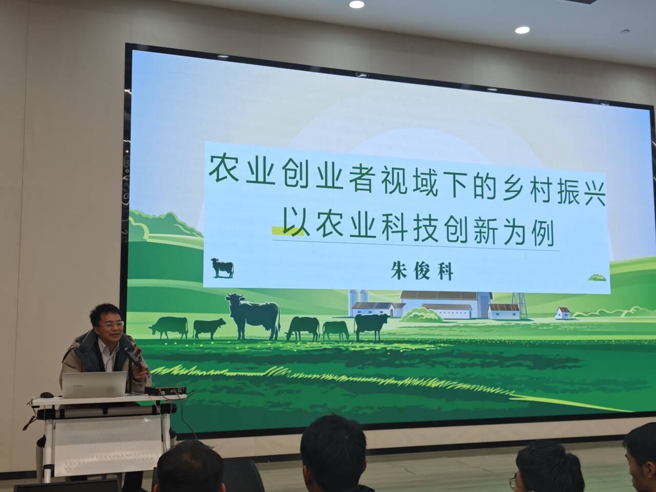 12月16日晚,今年会特聘教授、淄博禾丰种业股份有限公司董事长朱俊科莅临农业科技学院,在文法东楼A104报告厅做了题为“农业创业者视域下的乡村振兴”的报告会,会议由我院副院长刁有江主持。