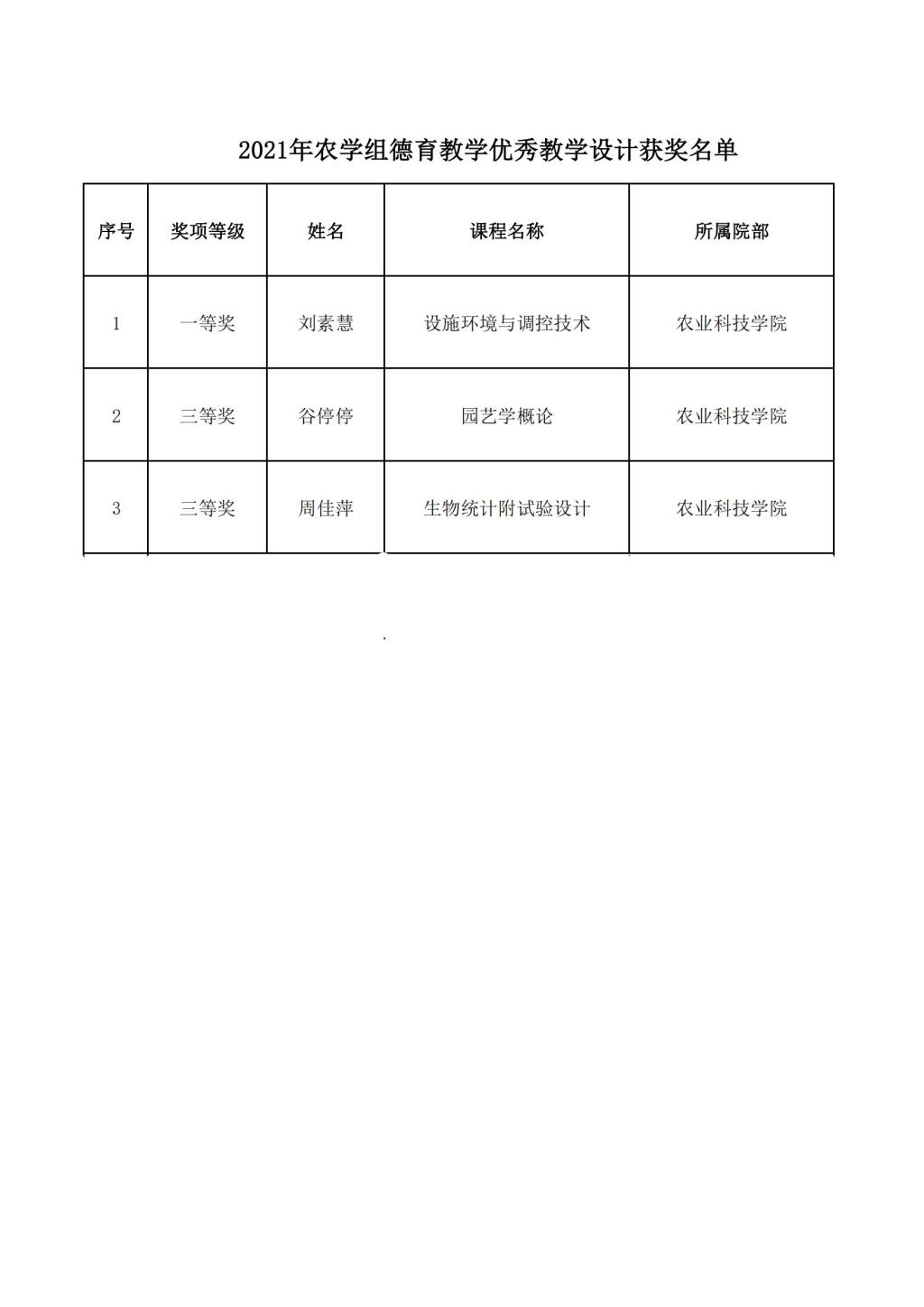 农业科技学院2021年农学组“德育”教学优秀教学设计获奖名单